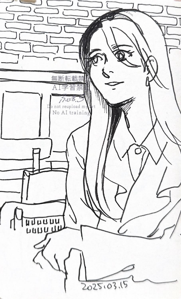カフェでお昼を取った後に何枚か描きました。