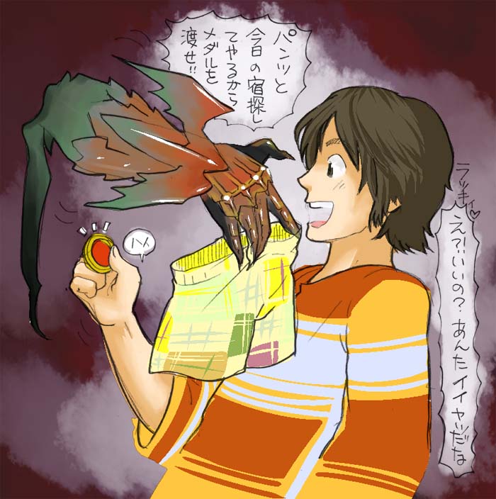 撒き散らされたメダルを集めてるアンクを見て