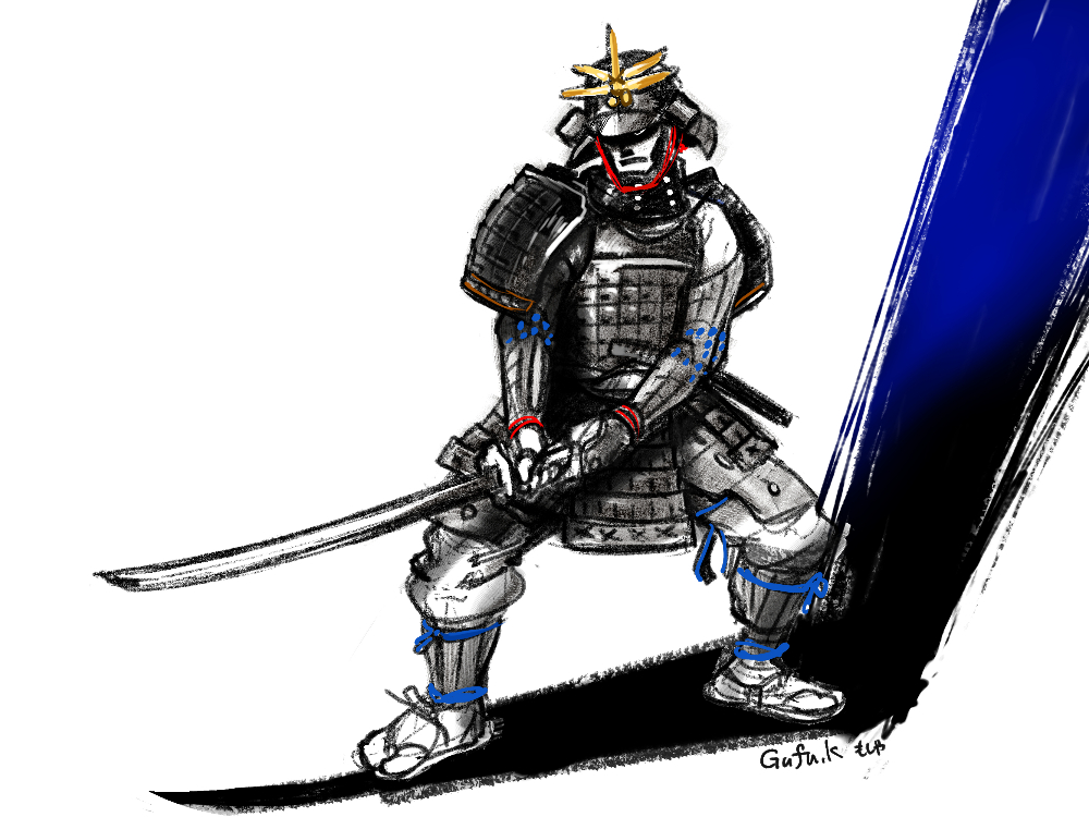 プライムデーに鎧武者のポーズ集買ったので見て描きました。
