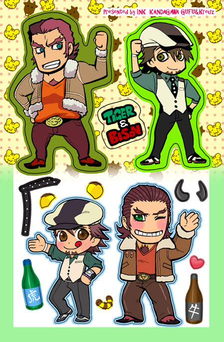 kreuzさんがサスペンダーネタ、私が虎ミミ(シールネタ?)