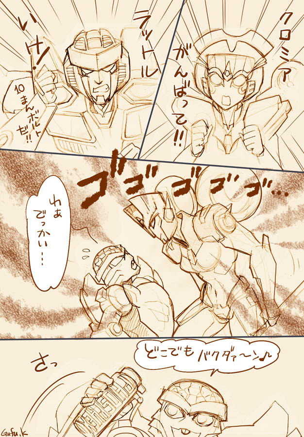 **TFgalleryに落書きマンガ絵4枚載せました。スタラトです。