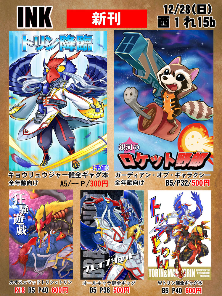 12/28 コミックマーケット 西1れ15b 持込予定本の一覧です。