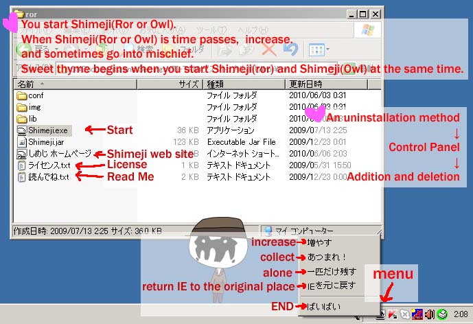 Sweet thyme begins when you start Shimeji(ror) and Shimeji(Owl) at the same time.