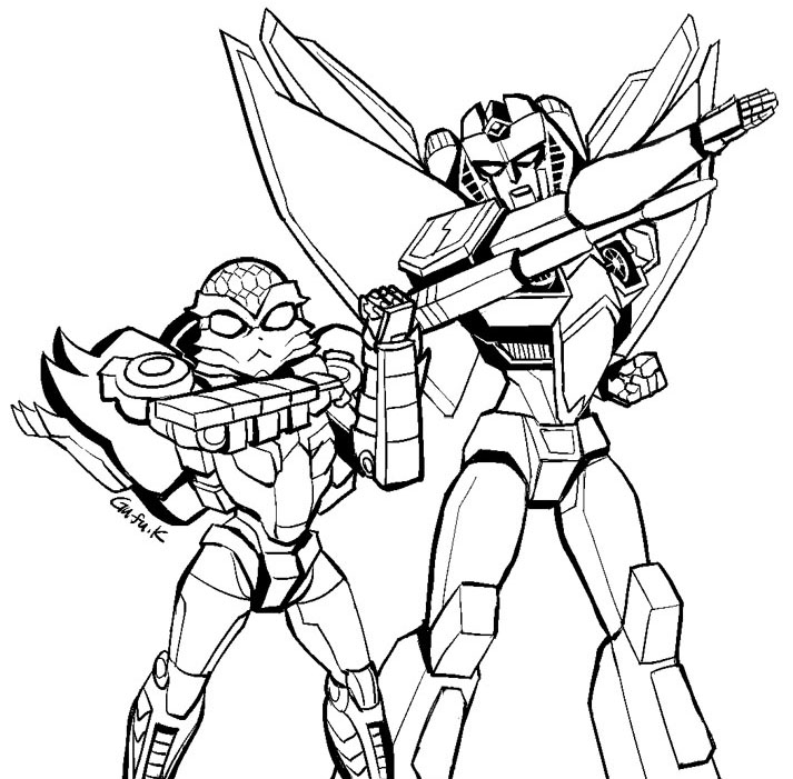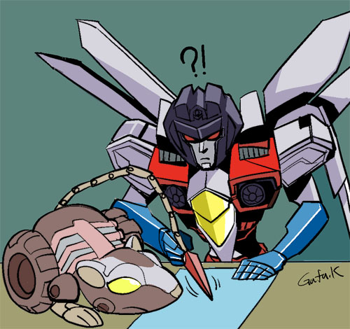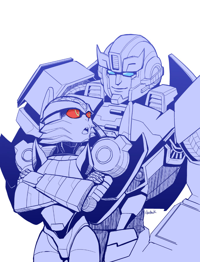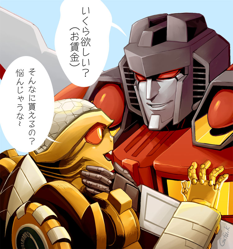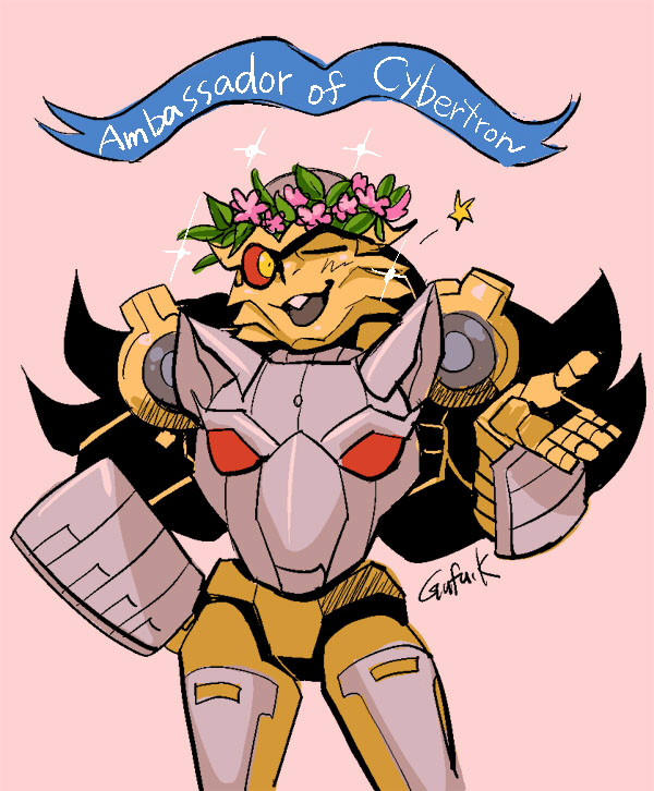 ついにラットルがスタスクの召使から「サイバトロン大使」に格上げになった記念絵。