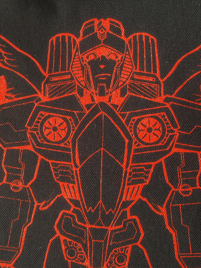 12オンスキャンバス生地、黒色 シルクスクリーン印刷、インク赤。