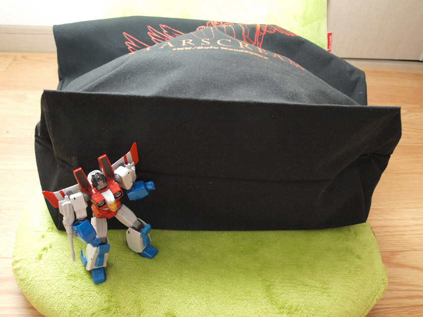 イベントで買った同人やノベルティ、グッズなどをポイポイ入れれる便利なサイズがいいなと思って作りました。差し入れとかも一緒に運べる。自分が欲しくて作りました。