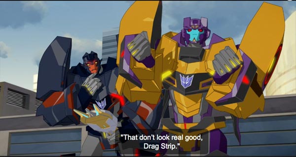 ドラッグストリップはその武器を手に取りモーターマスターへ向ける。