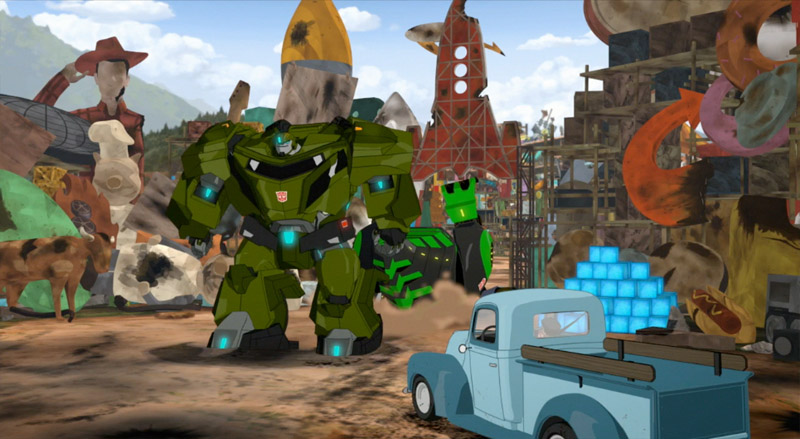 フラフラの彼女はビー達の基地、スクラップヤードを発見しエネルゴンを横取りしようとします。