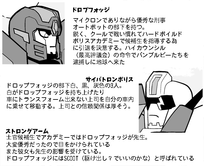 マイナーなキャラばかり取り上げてすみません、しかしマイクロンの身でサイバトロン社会で上り詰めた人物ってカッコいいです。ストロングアームの先生好きな人増えるといいな~。